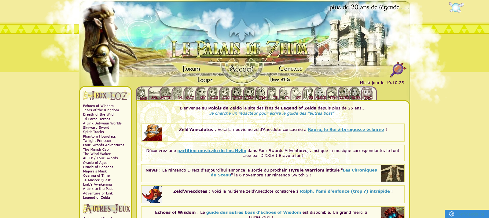 Le Palais de Zelda est un des sites francophone majeurs dédié à l’univers de The Legend of Zelda. Vous y trouverez solutions complètes pour tous...
