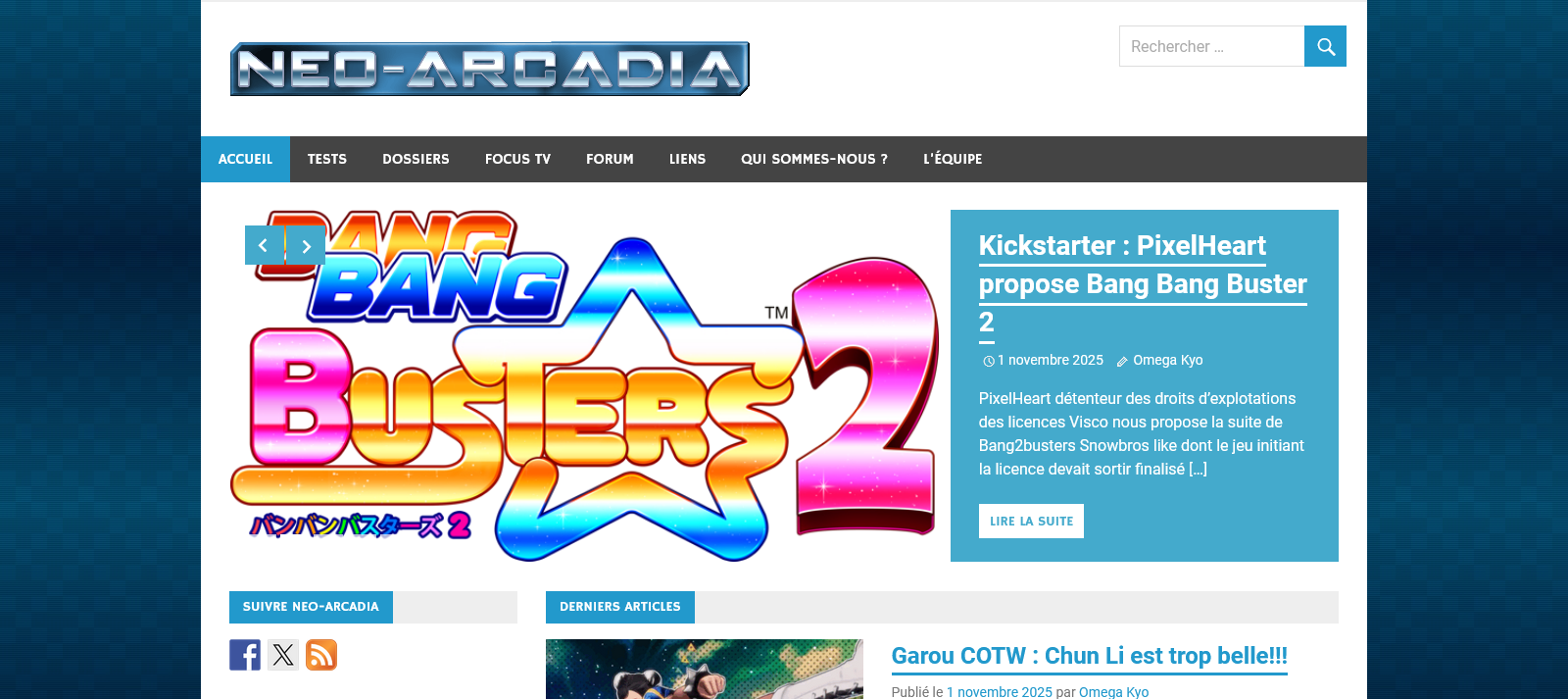 Néo-Arcadia, c'est le site francophone référence sur l'univers de l'arcade. Vous trouverez sur le site tout ce qui a trait à l’arcade ancien et récent...
