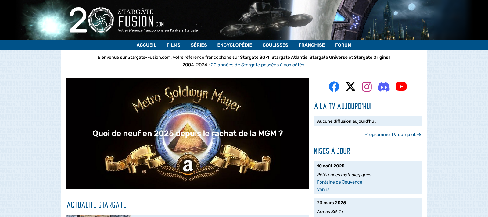 Stargate Fusion est un site francophone dédié à l’univers de Stargate, couvrant les séries, films et actualités de la franchise. Je me souviens avec nostalgie...