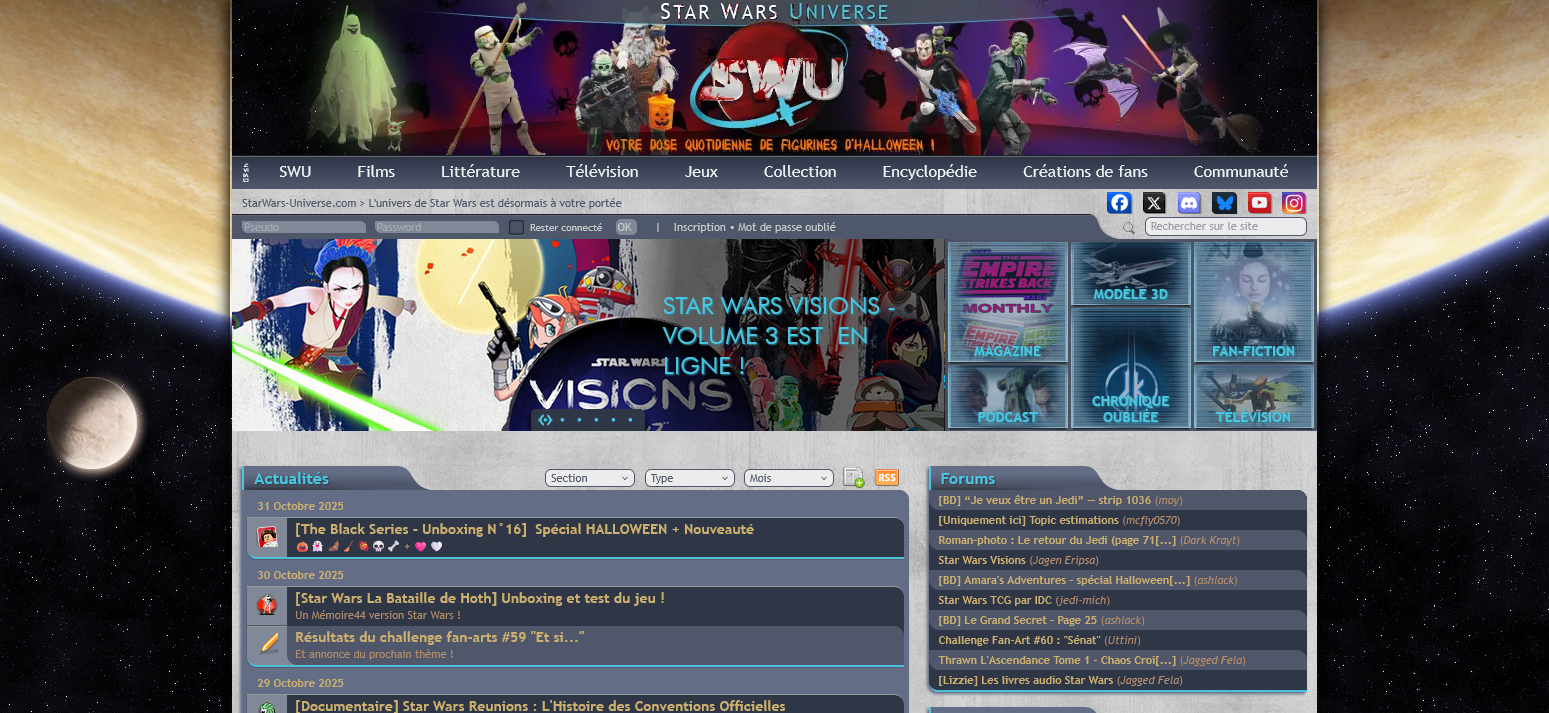 Star Wars Universe est une mine d'or dédiée à l’univers de Star Wars, couvrant films, séries, romans, jeux et actualités. Une communauté passionnée et du...