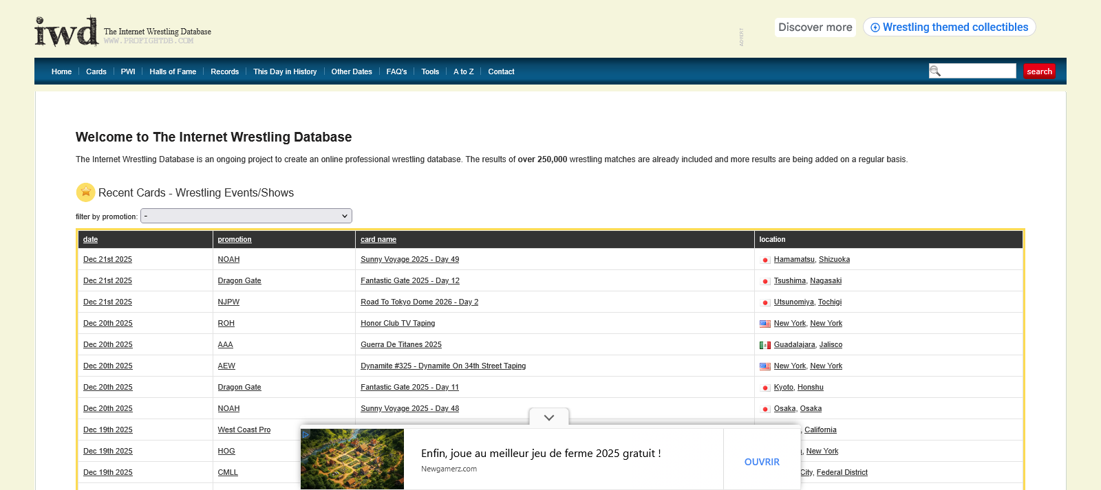 Let's get ready to rumble ! Fans de catch retrouvez avec ProFightDB la base de donnée ultime.Une mine d'or pour les nerds comme moi. C'est...